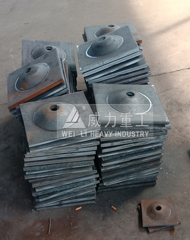 矿用锚杆托盘是煤矿山企业常用部件之一,材质为:碳钢Q235A3,规格型号也有多种有:120*120*6 、120*120*8 、120*120*10、 150*150*10、 150*150*8 (150是指托盘的外径 8是指厚度 单位为mm)、140*140*10、 140*140*8、200*200*14、240*240*14 、300*300*16 等,托盘型号不同,所需全自动630吨锚杆托盘液压机的吨位也不同,威力重工曾为济宁某矿企业、枣庄煤矿、山西煤矿、古城煤矿等地提供设计了锚杆托盘液压机,还有一些矿山企业要求我们提供锚杆托盘的自动化生产线。