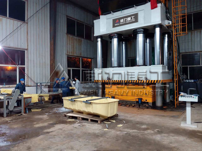 山东威力重工生产的液压机模压加工生产SMC玻璃钢制品,一次模压成型,生产效率高、表面光洁度好,能一次成型结构复杂的制品。玻璃钢风机壳成型液压机常见有两种结构、四柱式液压机、框架式液压机。您可以根据实际加工玻璃钢部件,选择合适的液压机型号吨位。